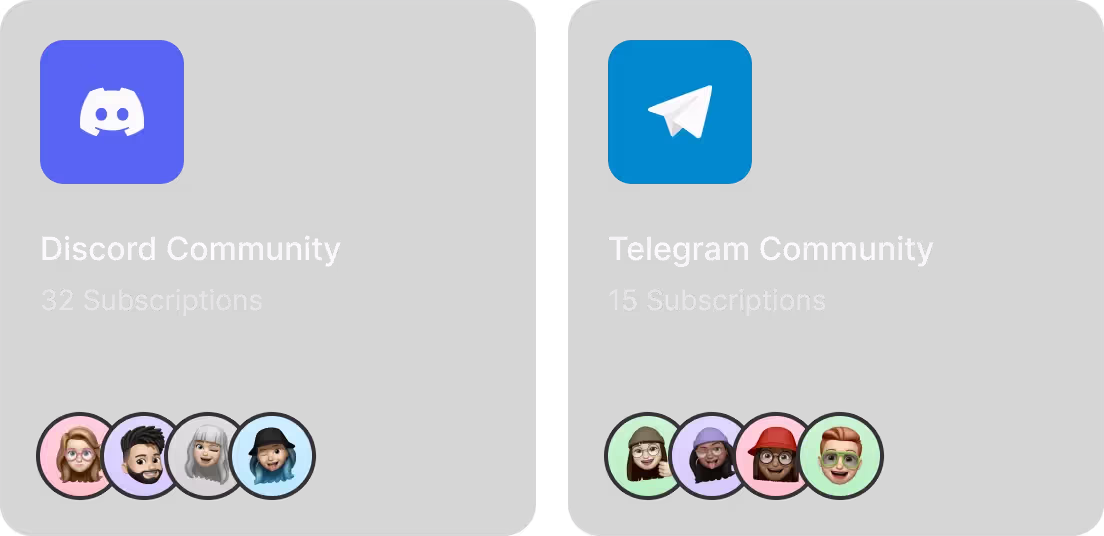 Monetize your Discord or Telegram communities by integrating with our subscription system, all with zero lines of code.