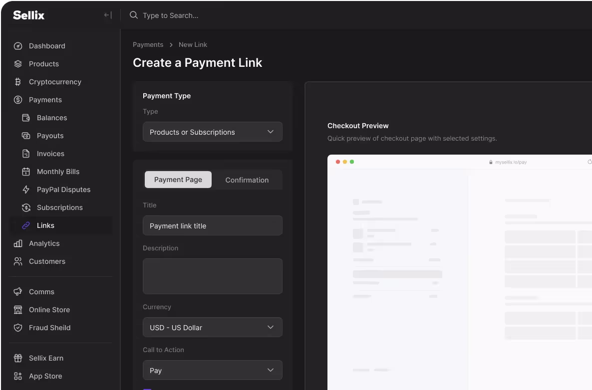 Payment links support the native Sellix Checkout experience.